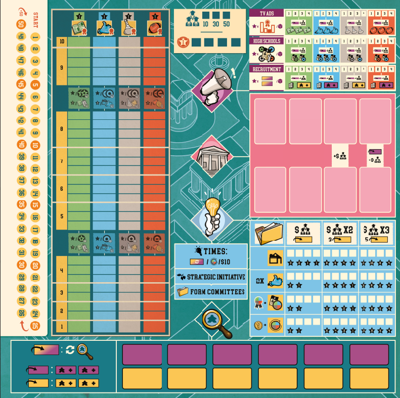 For 2-4 players in 90-120 minutes, Academia puts players in the role of university presidents seeking to run the most-renowned college in America. The path to victory is up to the players. Victory can come through a modern campus, top-level research, or the best sports teams in the country. If there’s a university style, it can be simulated with Academia. Just watch out for the excessive administrators!